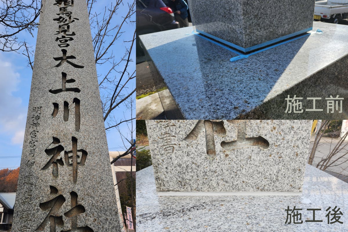 例えば、今年は社標のコーキングが剥がれてきて中に水が溜まっており、このままだとこの冬に凍って倒れる危険性があったため怪我人が出てしまってはいけないので、急遽修繕しました。