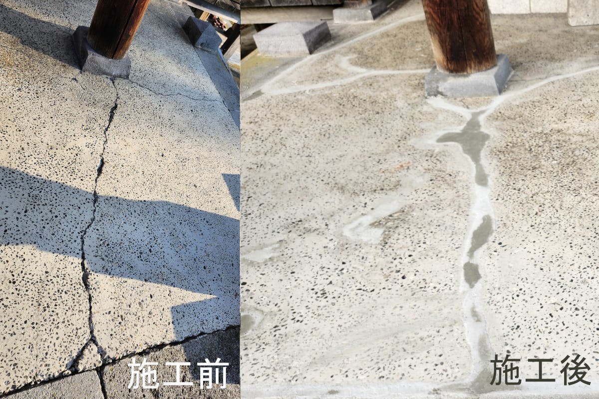 社殿前の床にもヒビが入っていましたので急遽修繕しました。