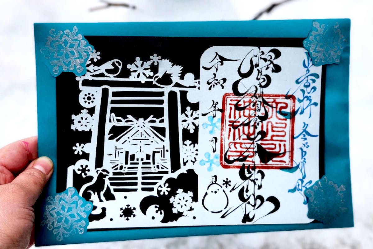 SNSまたは上川町のお店で切り絵御朱印を見かけて、訪れてくださるかたもいらっしゃり、大変嬉しく思っております。最近は季節ごとにお越しになる方からお声がけいただく機会も増えました。ありがとうございます。