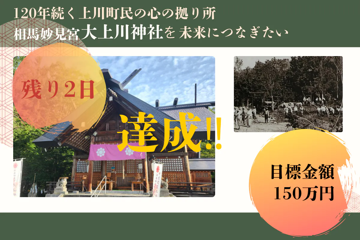 2026/02/26 09:08【クラウドファンディング達成のお知らせ】この度は、当神社クラウドファンディングにあたり、あたたかいご支援とお心寄せを賜り、誠にありがとうございました。皆様のお力添えにより、目標金額を達成することができました。ここに改めまして、心より御礼申し上げます。お寄せいただきましたご厚志は、神社の維持修繕ならびに環境整備のため、大切に活用させていただきます。祈りの場を守り、次の世代へと受け継いでいく責任の重みを、あらためて感じております。さて、本プロジェクトは終了まで残り2日となりました。目標は達成いたしましたが、神社の維持には継続的な費用が必要であり、今回の取り組みを契機として、さらに安定した環境を整えてまいりたいと考えております。もし周囲にご関心をお持ちの方がいらっしゃいましたら、最後の2日間、見守りの輪をお広げいただけましたら幸いに存じます。無理のない範囲でのお心添えが、今後の歩みの大きな力となります。終了の日まで、感謝の思いを胸に、誠実に取り組んでまいります。皆様のご健勝とご平安を心よりお祈り申し上げ、御礼ならびにご報告とさせていただきます。大上川神社 宮司 池田 もっと見る