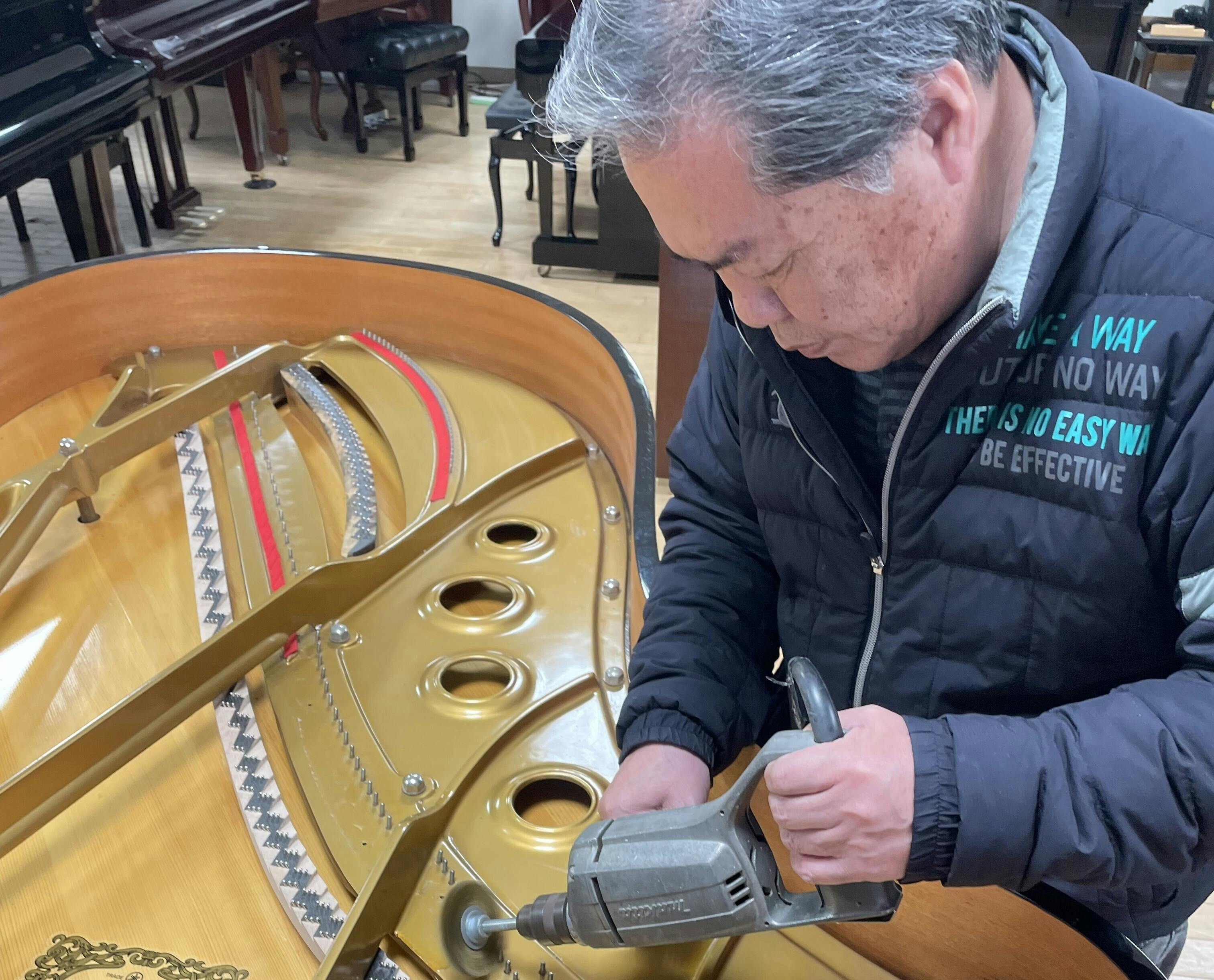東日本大震災発生時には、多くの学校や施設のピアノが被害を受ける中、私たちは地域の音楽文化を守るため、被災したピアノの修復に全力で取り組みました。その中でも最も困難だったのが、この『奇跡のピアノ』の修復でした。塩水に浸かったピアノの修復は、通常の技術だけでは対応できず、通常は決して行わない「水洗い」や「洗浄」、「錆止め剤の塗布」など、さまざまな試行錯誤を重ねた結果、何とか音を取り戻すことができました。
