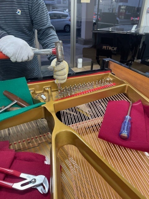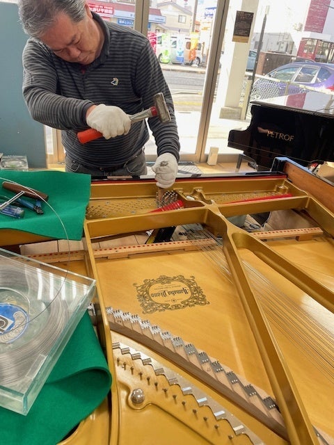 音程調整のためのチューニングピンとピアノ線(芯線)の交換
