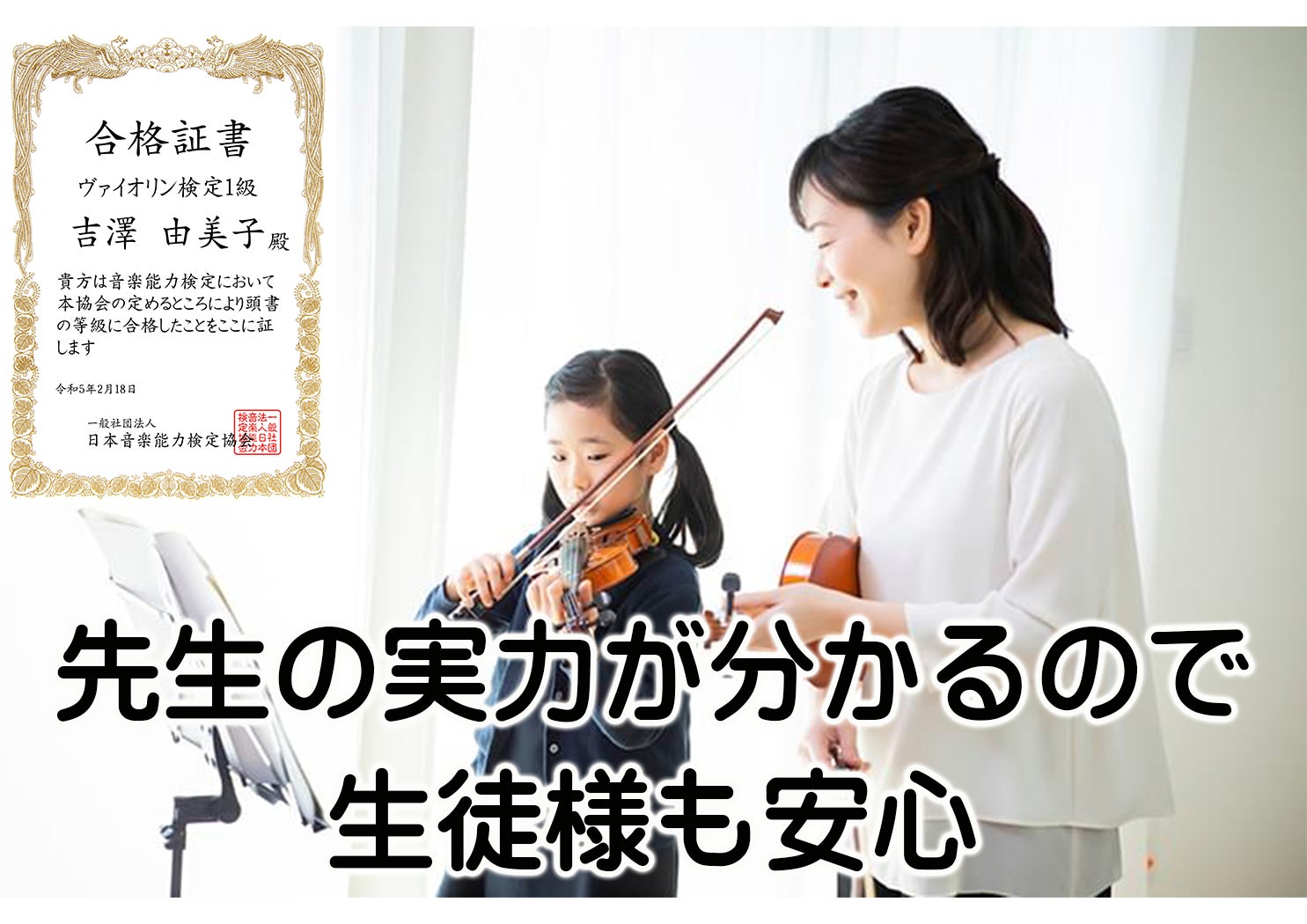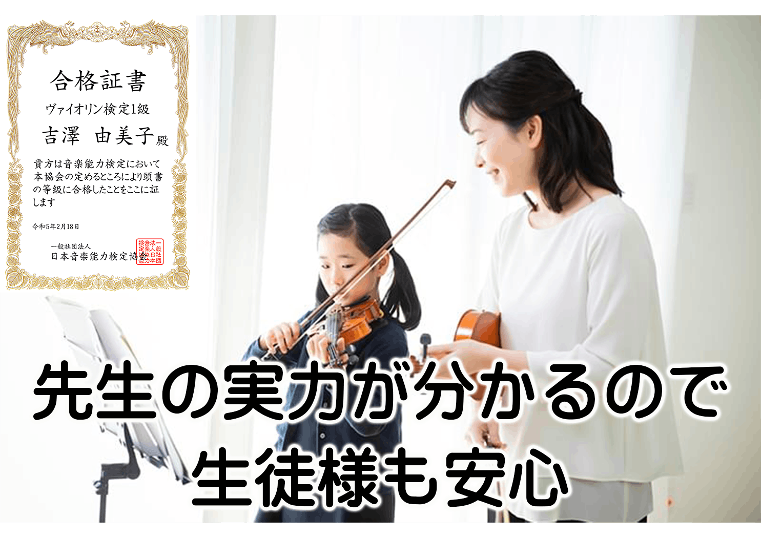 音楽検定がより広まることで生徒様が教室を選ぶ明確な基準が視覚化し、確かな実力や知識を持った教室が増え、逆に悪質なレッスン教室が減り、今から音楽を始める生徒様にとってより良い環境作りを目指しております。