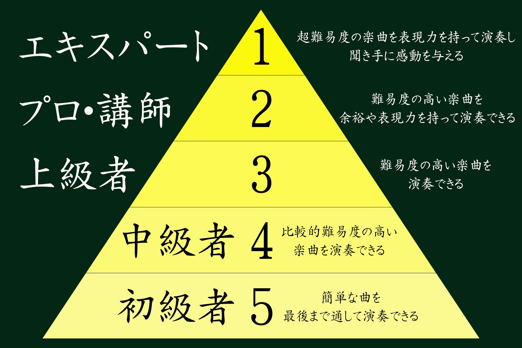 4級(中級者)・・・楽器演奏歴(練習歴)3年~5年ほどの方の受検が多い