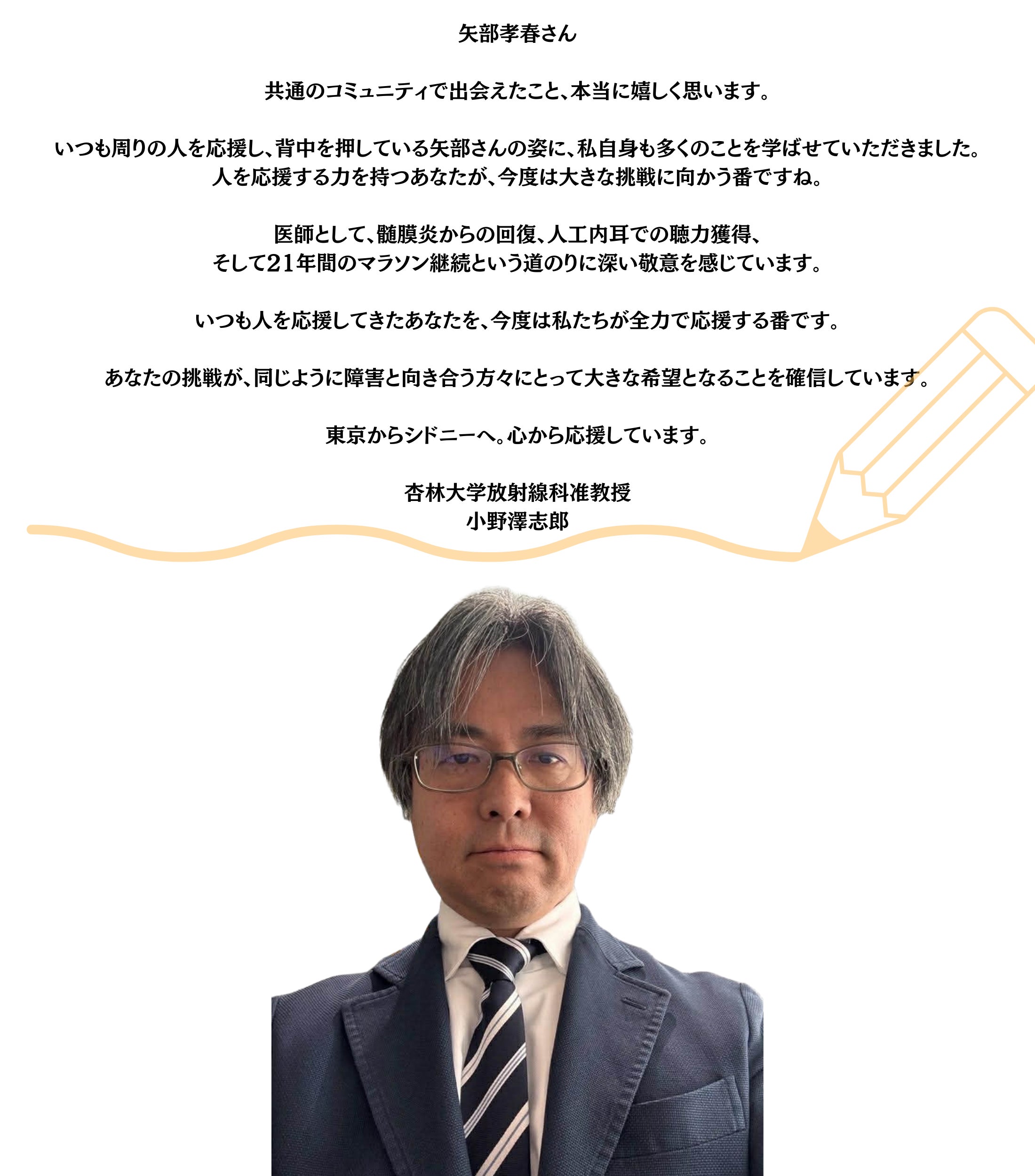 特に聴覚障害を持った方々、またそのご家族が僕の挑戦する姿を見ていただくことで、結果として背中を押すことになれば嬉しいと考えています。