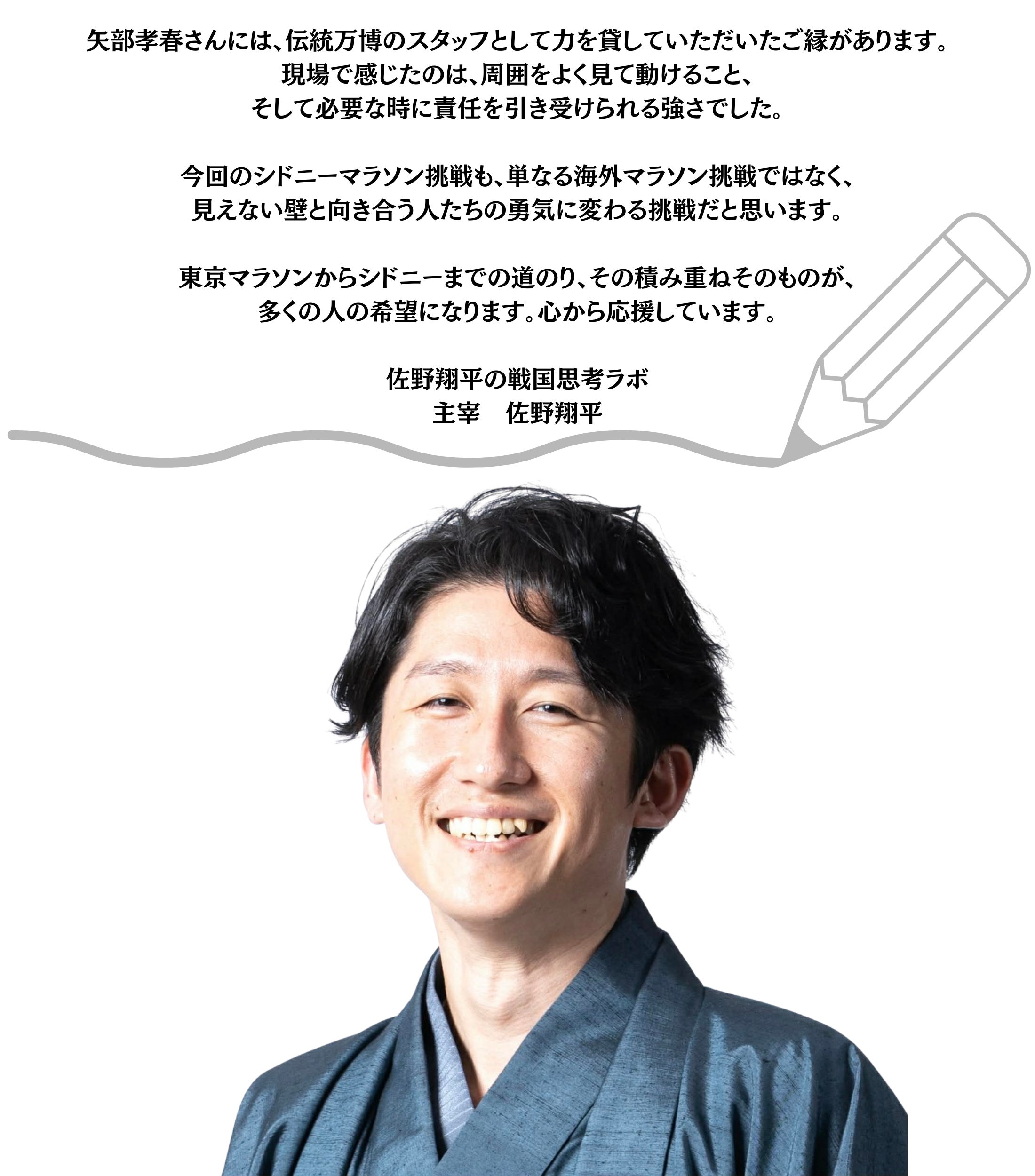 世界的な大会の舞台に立ち、自分自身の限界に挑戦します。東京マラソンからシドニーマラソンまでの過程も含めて、リアルな挑戦の記録を発信していきます。