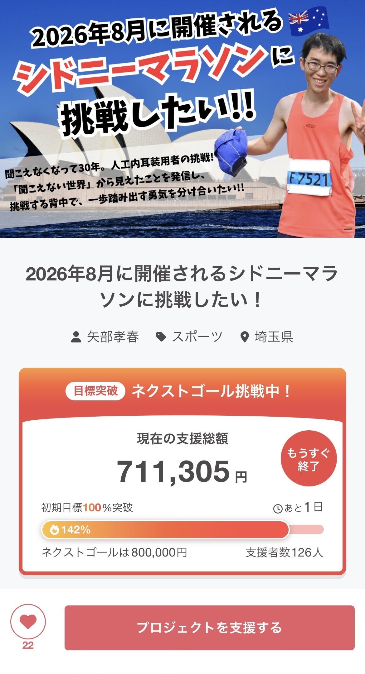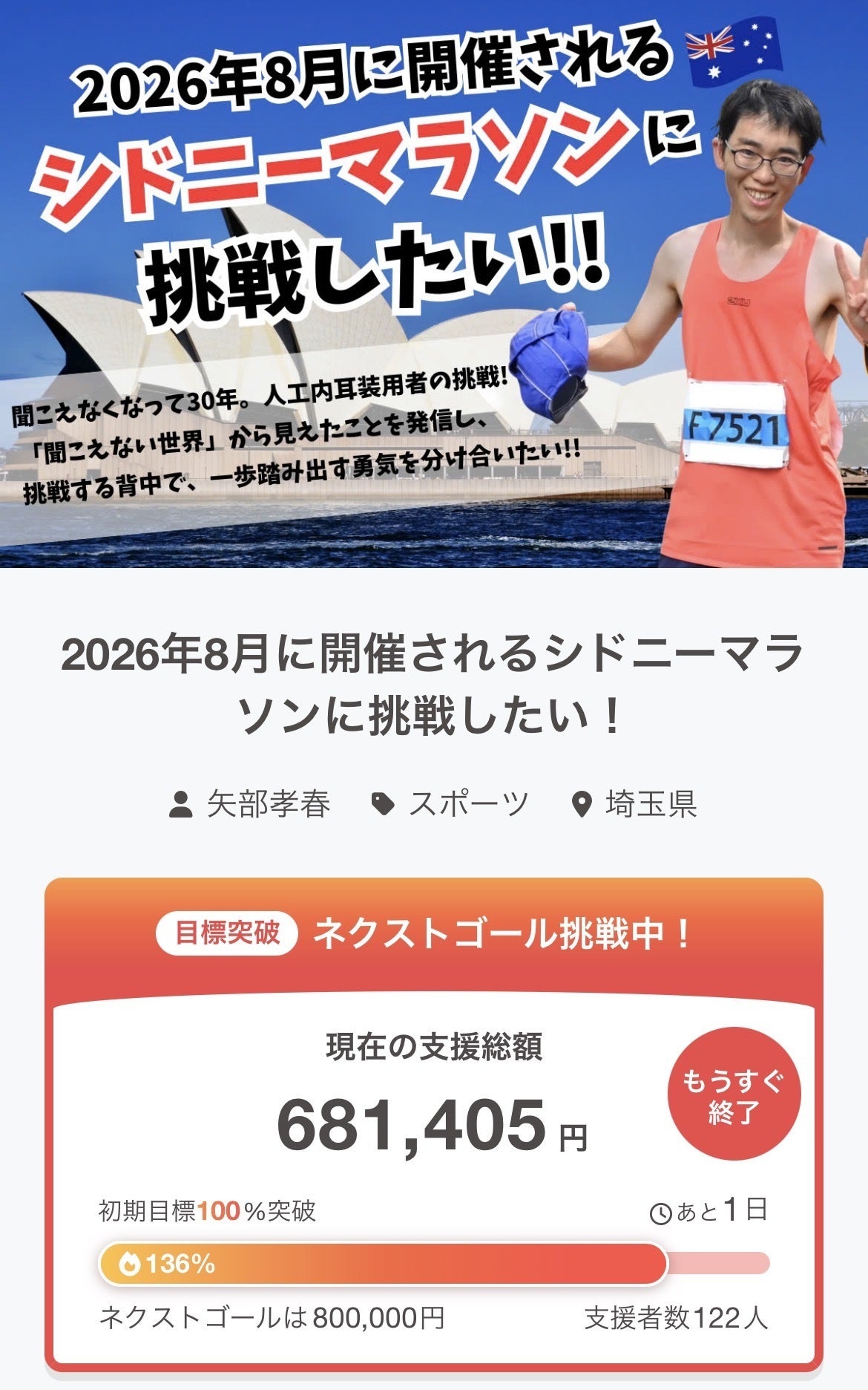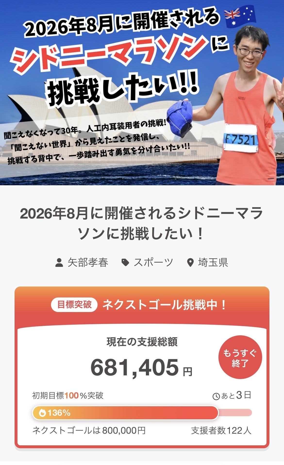 そんな僕は今回、2026年8月に開催されるシドニーマラソンへの参加を決意し、同時にクラウドファンディングにも挑戦することにしました!