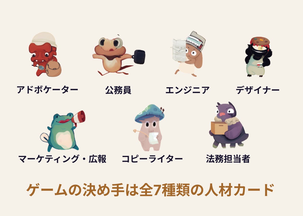 ゲーム内でプロジェクトを完成させるには、エンジニアだけでなく、デザイナー、ライター、広報担当者といった様々な「人材」が必要です。