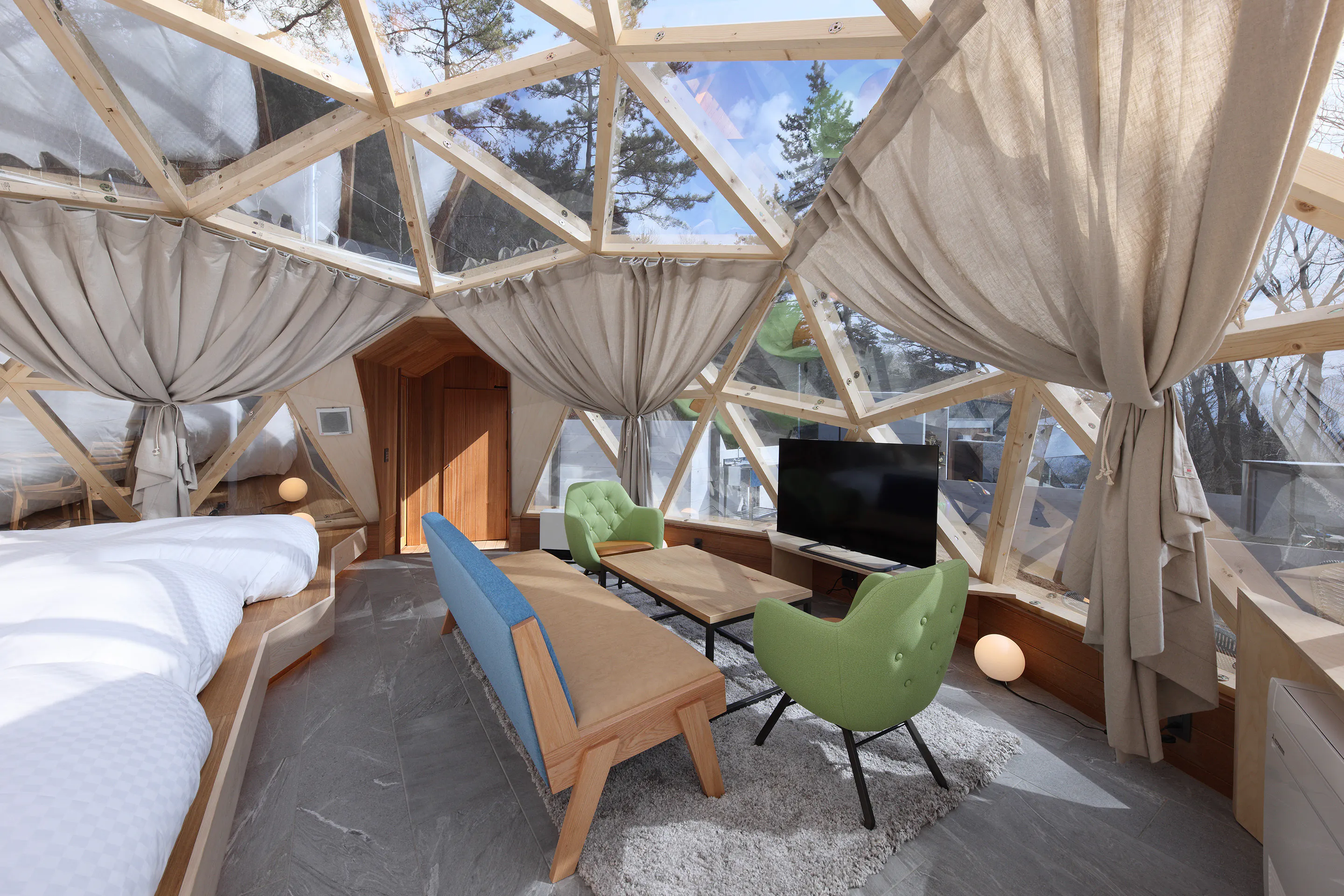 DomeKoti:大きなガラス窓から森を一望。まるで空中に浮かんでいるような感覚