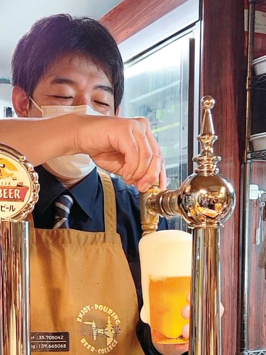 学長はメインページ内でもご紹介している、東京中野にある『麦酒大学』というビアバーで働きながら、注ぎ手の育成や技術の布教、テレビや雑誌での広報と、広く深く楽しみながら活動していらっしゃる凄い御仁です。