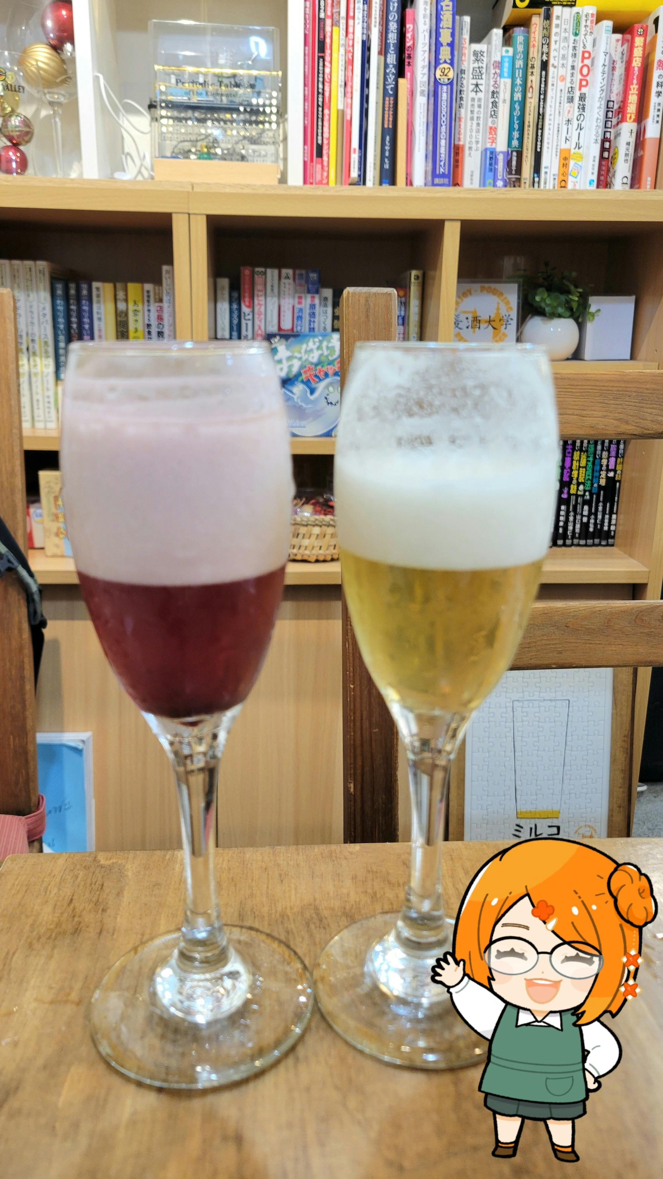 こちらはいわゆるビアカクテル。左がカシスリキュール、右がレモンリキュールが入っています。