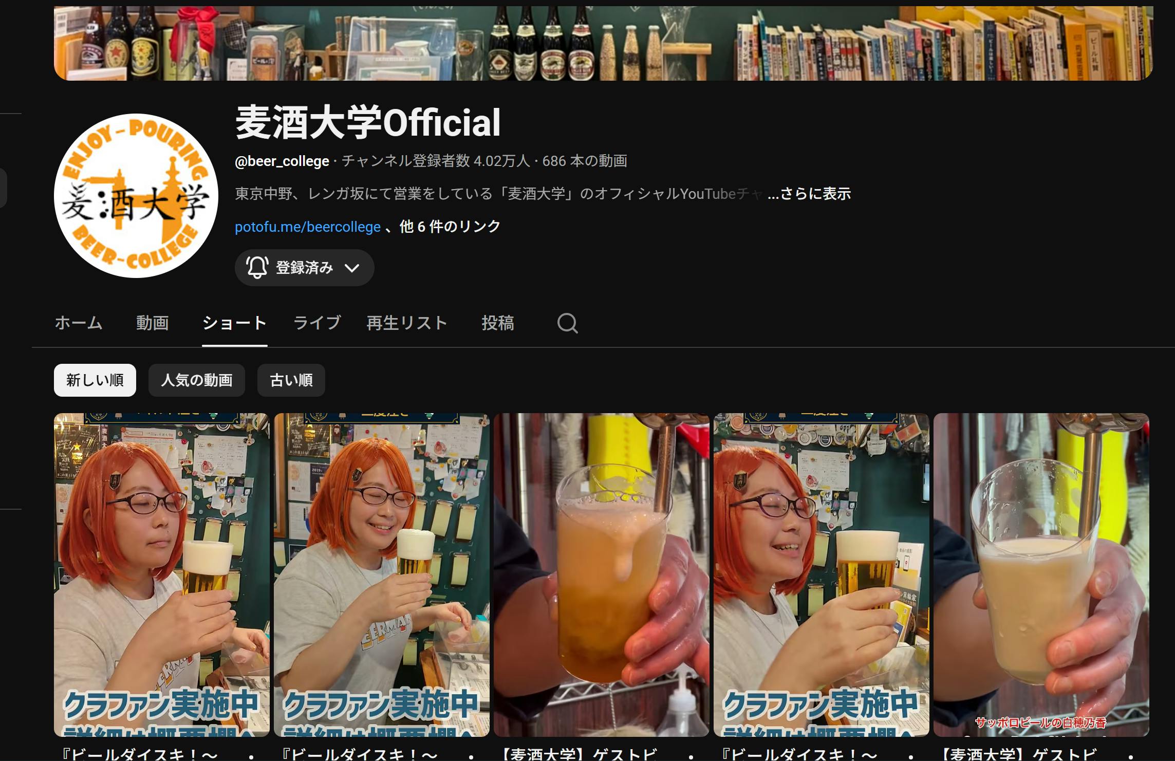 ビールが美味しい推しのお店、麦酒大学の公式YouTubeチャンネルの!