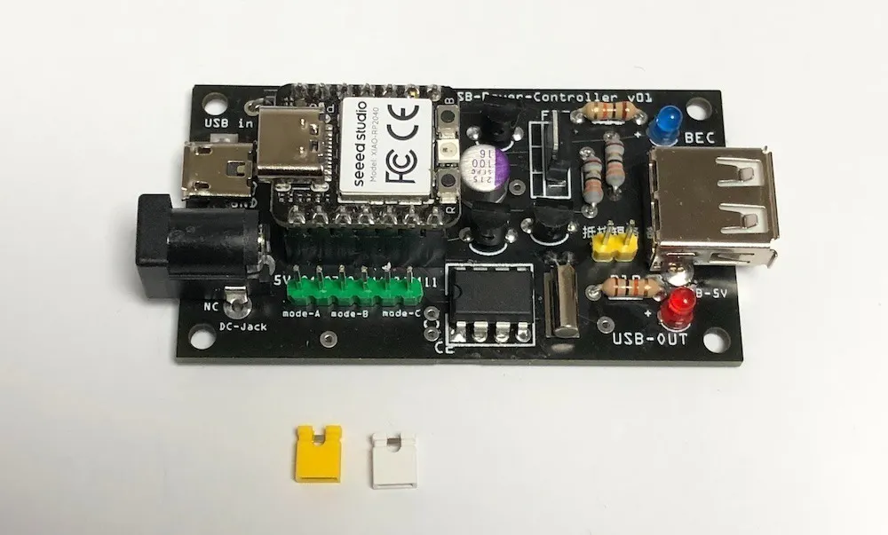 UPC ( USB-Power-Controller : USB電源制御装置) は小型化、低価格化のため、表示は最小限にしていますし、設定用の機器はなく設定ファイルをThonnyなどで書き換えることにより行うようにしています。モード設定のみターミナルプロックで設定します。