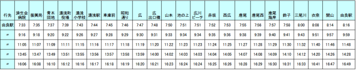この他に、有田鉄道バス、大十オレンジバスも含め、海南市、有田市で運行していますが、これも必要最小限での運行のために、利用者の利便性を満たしているとは言えません。路線範囲、運行数、サービスの総合的なところで、中紀バスを参考にしました。尚、海南市の運行状況も路線数、運行ルート、サービス共に変わりないために、参考にしたいとお考えの方は、各バス会社の案内をご確認ください。