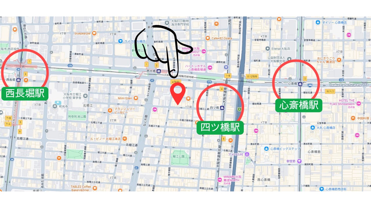 場所:大阪市西区北堀江(四ツ橋駅から徒歩2分)