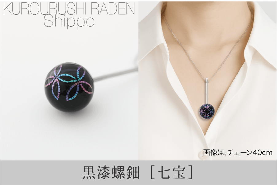 七宝の文様には螺鈿200枚。あまりに繊細な作業のため、匠でも、一日に一つ作るのがやっとの逸品です。
