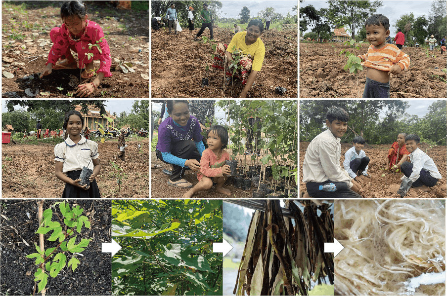 カンボジア苗木支援・日本での和紙の原料の楮(コウゾ)植林。今後は、ラオスでの果樹植林プロジェクトも計画中。「小さな行動が未来を変える」—WOCHIは、そんな想いを胸に、美と自然が共に生きる未来を目指しています。