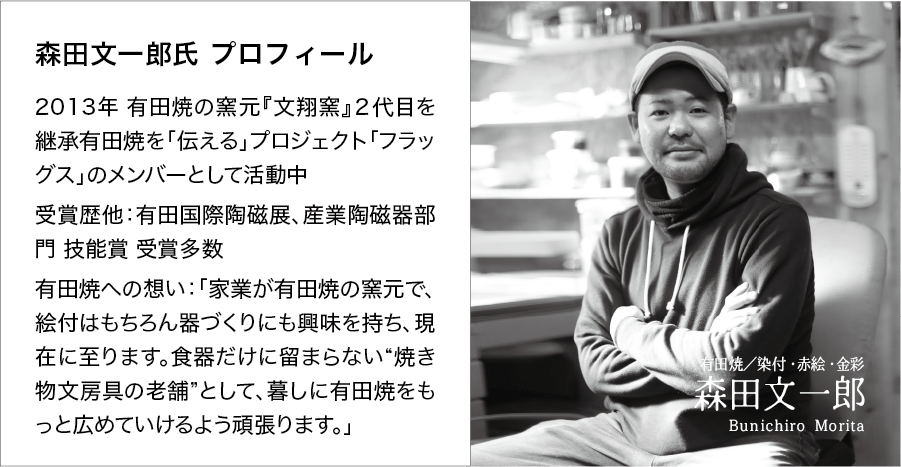 有田は、約400年前に日本で初めて磁器が焼かれた歴史ある産地です。高温の素焼窯で磁器の下地を焼成し、赤主体の上絵具で絵付けをし低火度で焼き付けたものです。