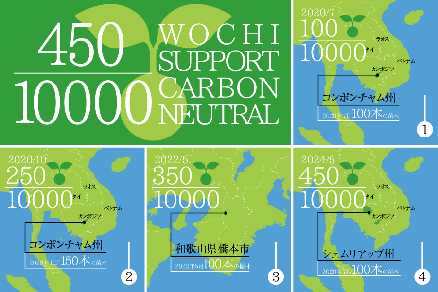 WOCHIは、伝統工芸の継承とともに、地球環境を大切にする活動にも取り組んでいます。これまでに、国内外での植樹や緑化の支援活動を行い、地域に寄り添いながら自然と人のつながりを育んできました。