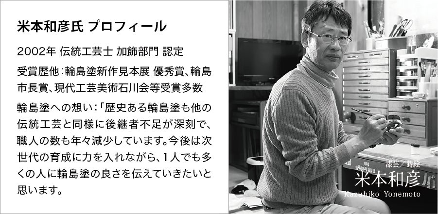 仕上げに金の粉(24K)を蒔いて文様を描く、日本独自の伝統技法です。