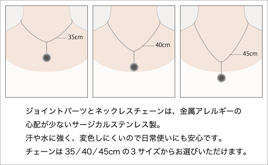 アレルギーに配慮したサージカルステンレス素材を使用。水や汗にも強く、長く美しさを保ちます。