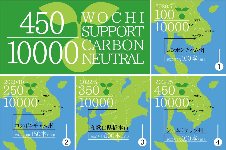 カンボジア苗木支援・日本での和紙の原料の楮(コウゾ)植林。今後は、ラオスでの果樹植林プロジェクトも計画中。「小さな行動が未来を変える」—WOCHIは、そんな想いを胸に、美と自然が共に生きる未来を目指しています。