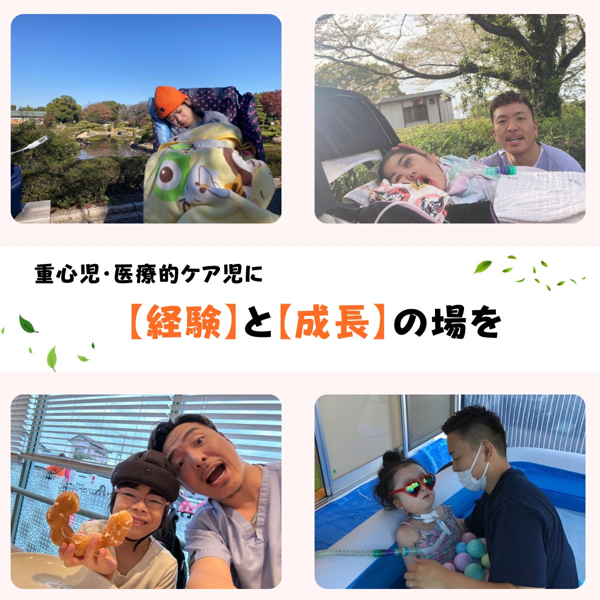 しかし、重心児・医ケア児は、外出するハードルが高いお子さんもいれば、自らの力で体を動かすこともできない子もいます。そのため、どうしても様々な面で【経験】が不足してしまうのが事実です。