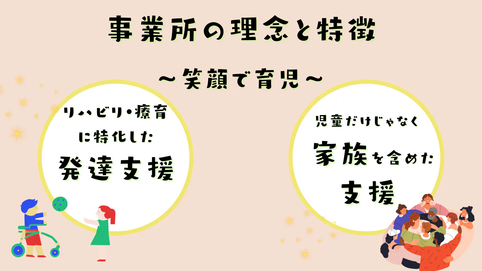 重心児・医ケア児が安心して通所でき、子供達はもちろんその家族・関係者にも笑顔が増えるような施設を作ることを決意いたしました。