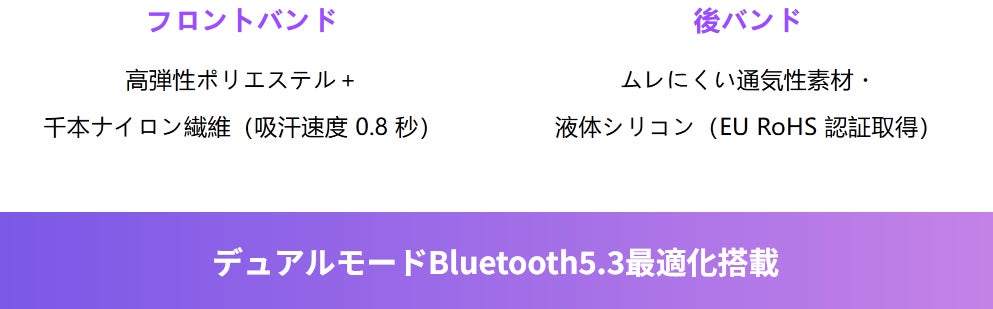 ヘッドバンド構造により、弾力性のあるフィット感を実現。ジョギングでもダッシュでも、ジャンプでも力強い動作でも、ブレずにしっかり固定されます。