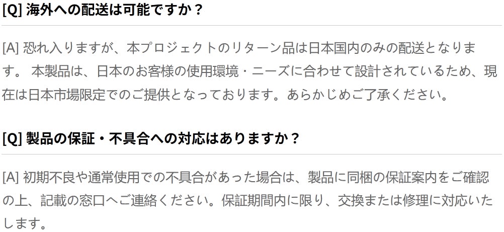 本プロジェクトで取り扱うリターン品は、海外メーカーの製品であり、Richgo株式会社は正規代理店として販売を行います。