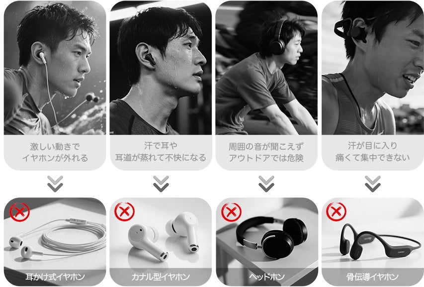だからこそ、私たちはこの製品を開発しました。運動中の「聴く」に関するすべての悩みを、根本から解決するために。