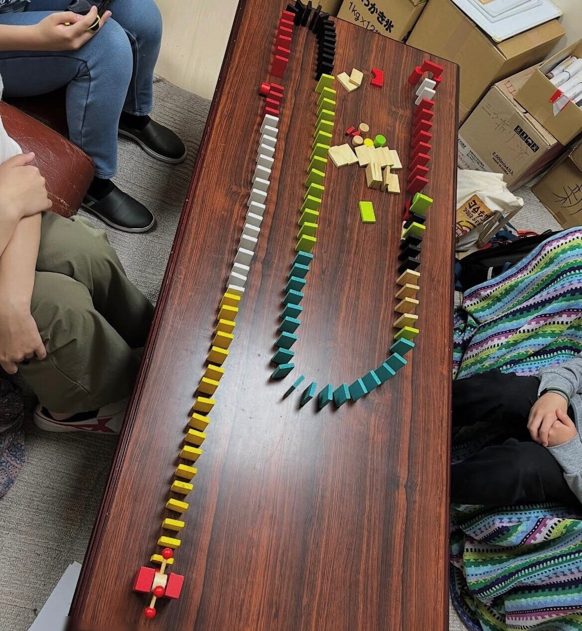 子どもたちが協力して完成させたドミノ。