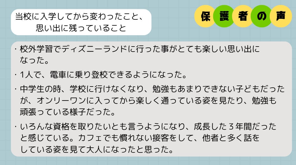 当スクールに通う生徒は、一人ひとりの特性や心身の状態に合わせたきめ細かな配慮を求めています。