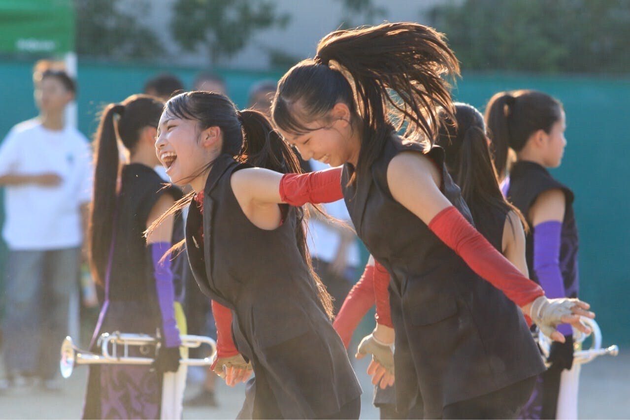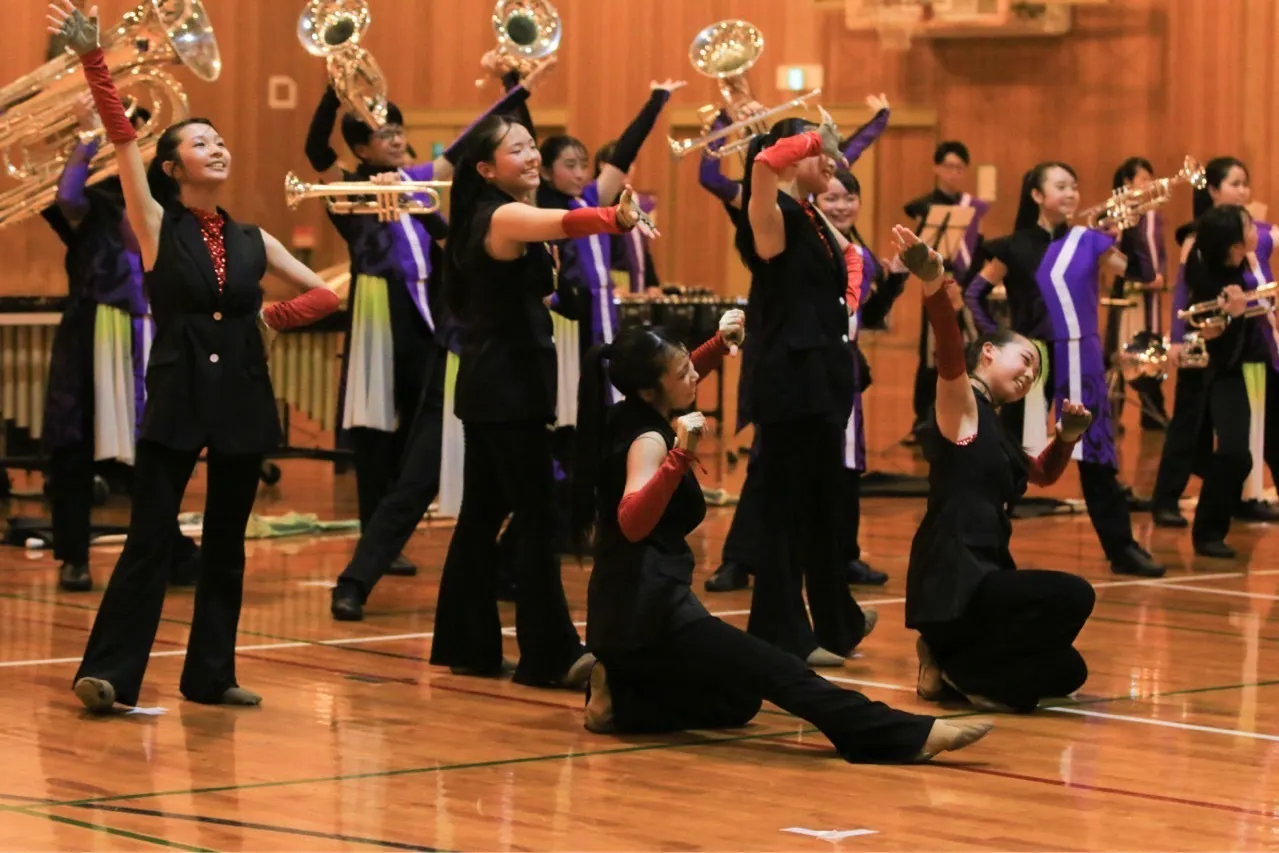 管楽器のブラスパート、打楽器のバッテリーパート、木琴やティンパニなどの1カ所でリズムを作り上げるピットパート、そしてフラッグやダンスの動きでショーの流れを作るカラーガードパートからなるのが特徴です。4つのパートが力を合わせて、観客を耳から、目から、そして演者の笑顔を通じて心から楽しませるショーを目指しています。