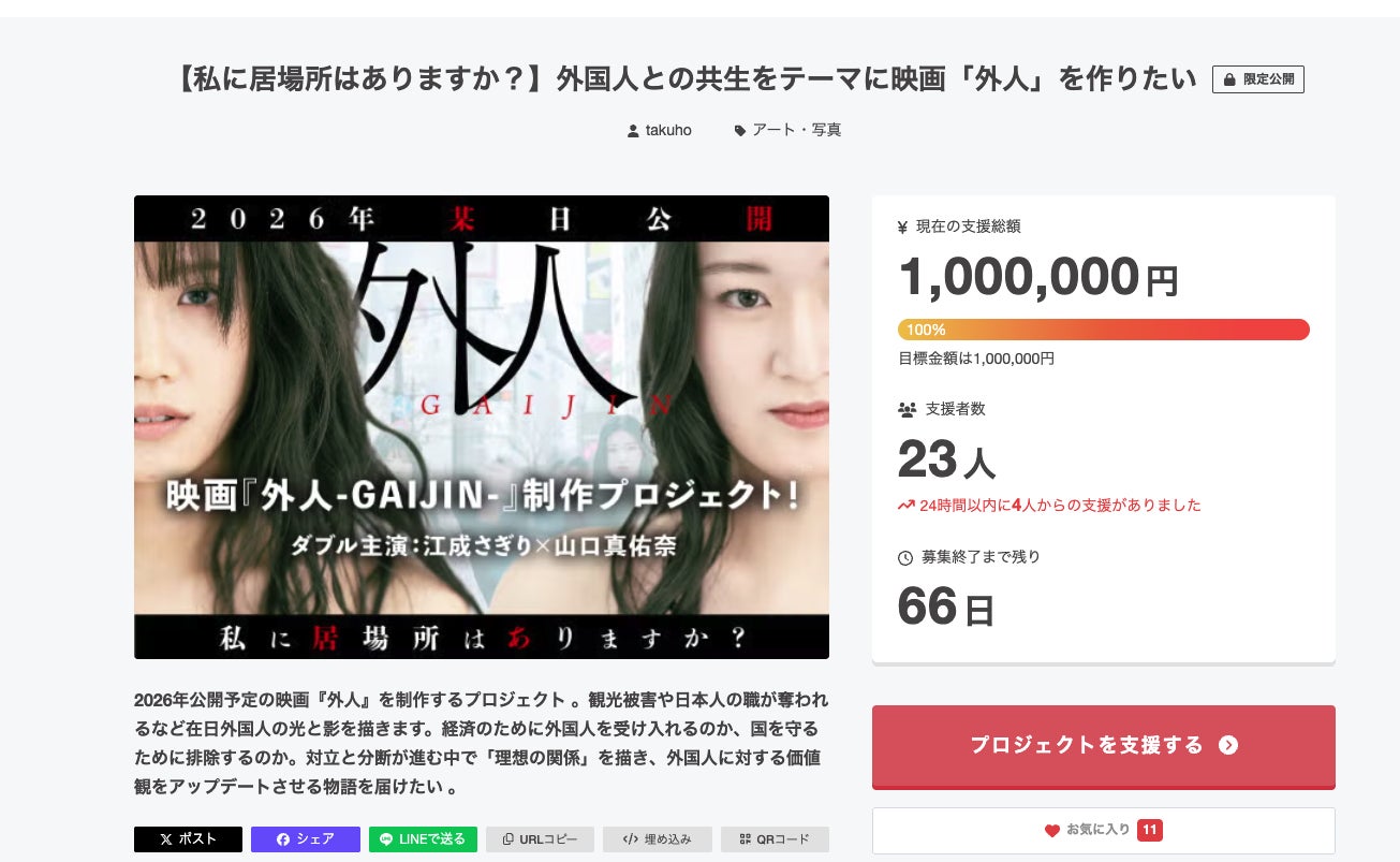 ご支援いただいた皆様、シェアしてくれた皆様、応援の言葉をくれた皆様、