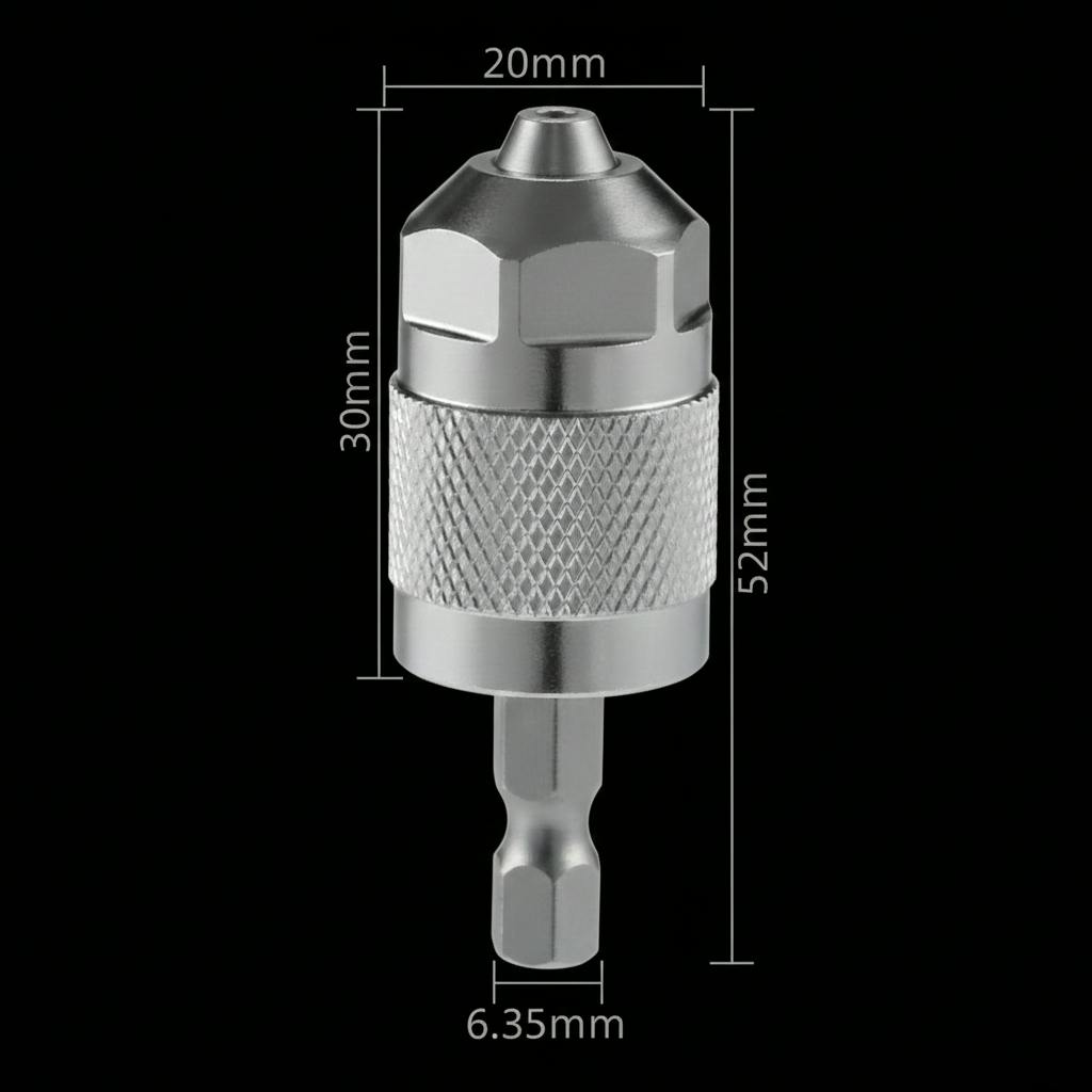 そこで、「丸軸ドリル(径1.5mm〜6.5mm)」がそのままガッチリ使えるようになるミニチャックをセットに組み込みました!