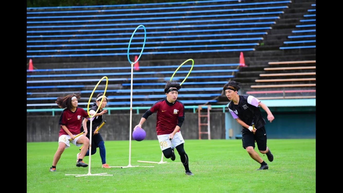 私たちは、学生主体でハリーポッターのクディッチから生まれた新しいスポーツ「クアッドボール」の学生大会を開催します。