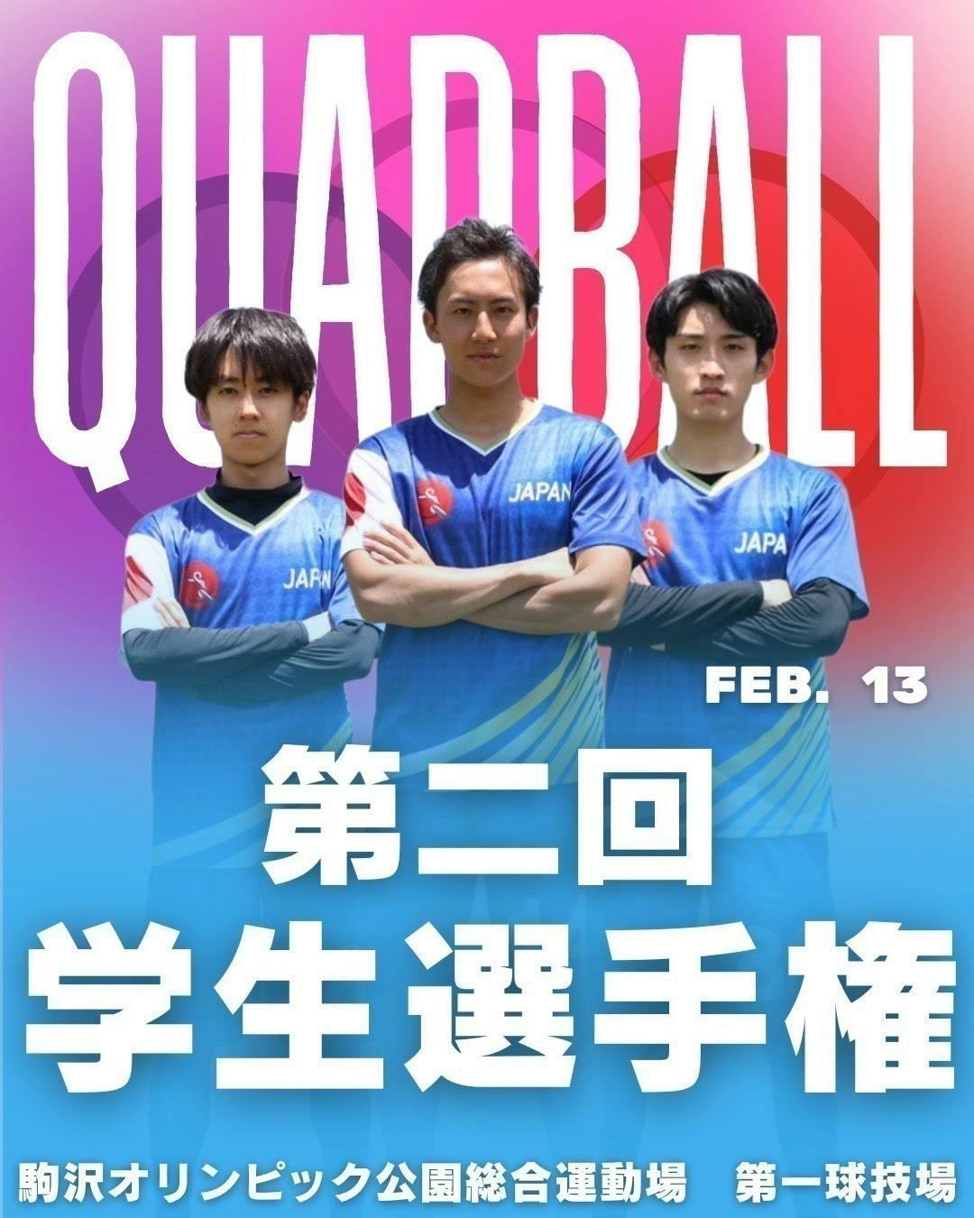 2026年2月13日、駒沢オリンピック公園第一球技場にて、第2回全日本学生クアッドボール選手権大会が開催されることになりました。