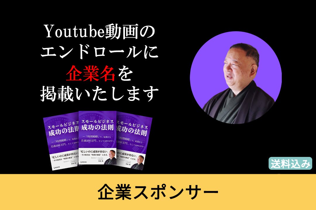 企業スポンサーとしてYoutube動画のエンドロールに企業名を掲載させていただきます。