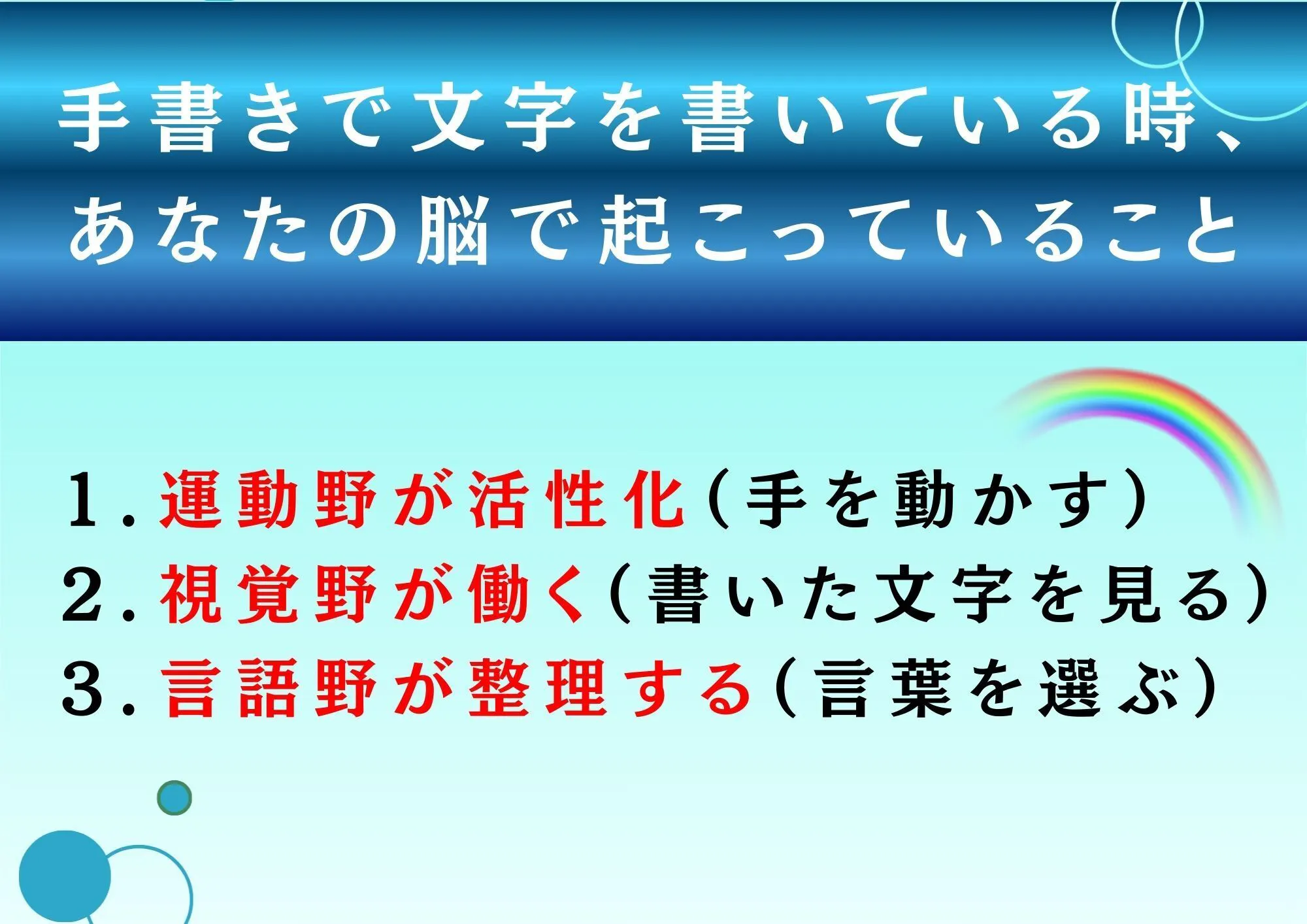 でも、手を動かして文字に書き出すと、脳の異なる部分が活性化されます。