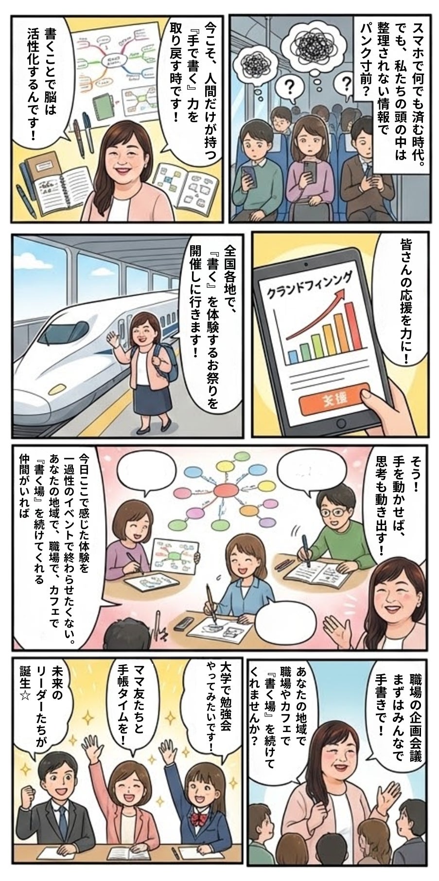 みんなで「書くことを楽しむお祭り」を開催し、一人でも多くの人に手書きの力を体験してもらいたいのです。