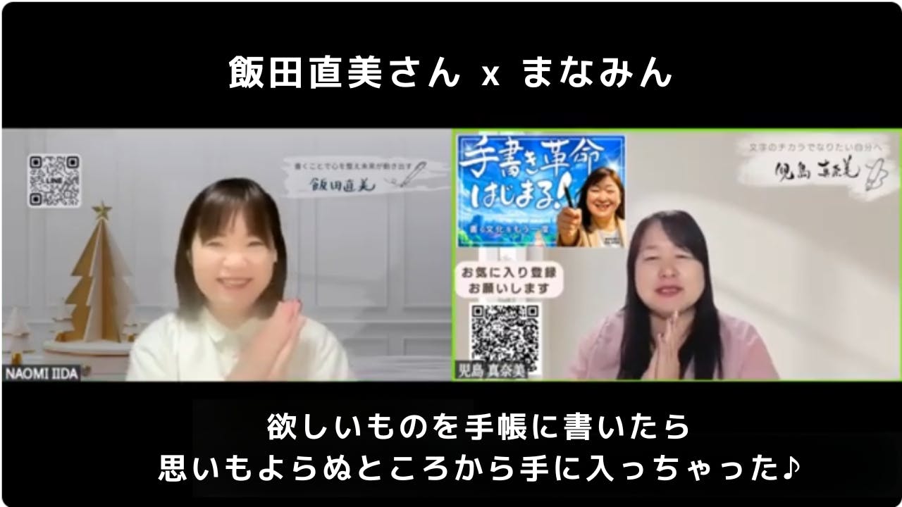 今回のゲストは、私の筆跡診断仲間であり、日頃から活動を支えてくれている**飯田直美さん(なおちゃん)**です。