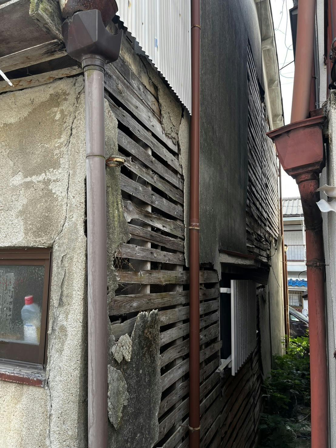 なので雨漏りや外壁の崩れがひどく、トイレも汲み取り式(ぼっとん便所)で誰もこの物件を買いたいと思わないひどい状態でした。