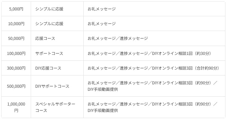 支援金額内容特典詳細