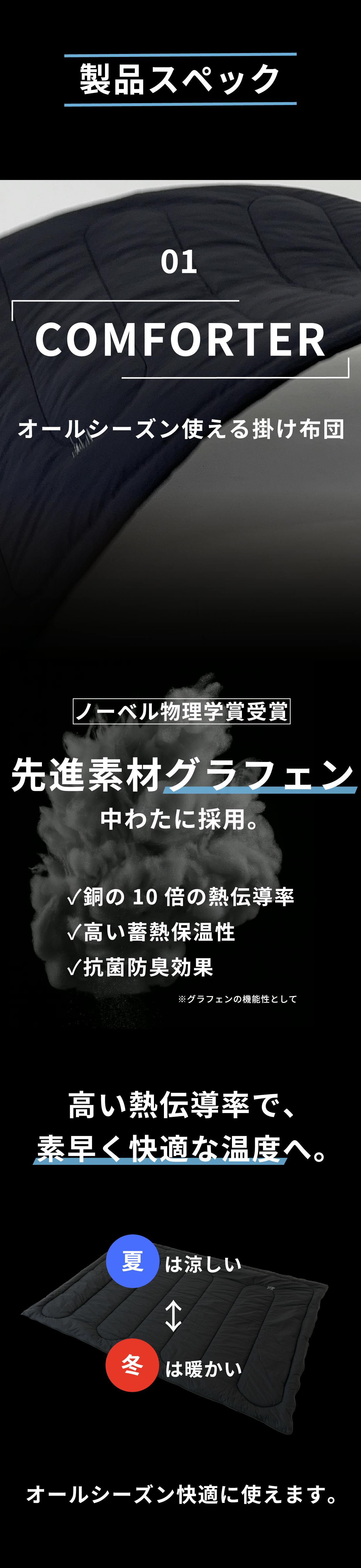 リバーシブル生地で寝袋にもなる掛け布団で、一年中快適です。