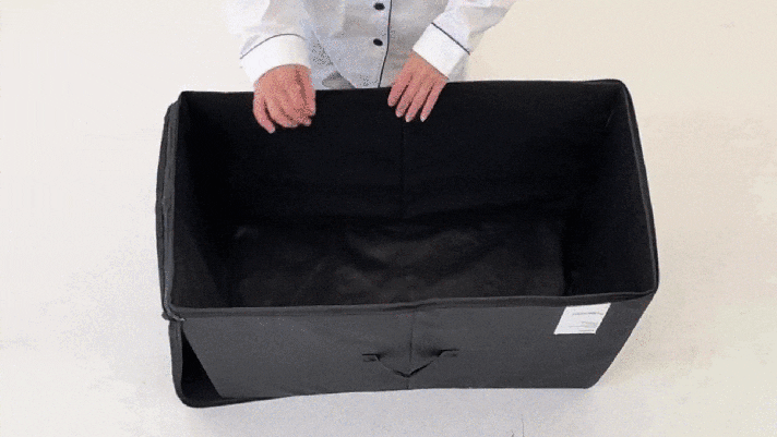 A.ベッド下、クローゼット、押し入れなどに収まりやすいサイズ設計です。持ち手付きで移動も簡単です。