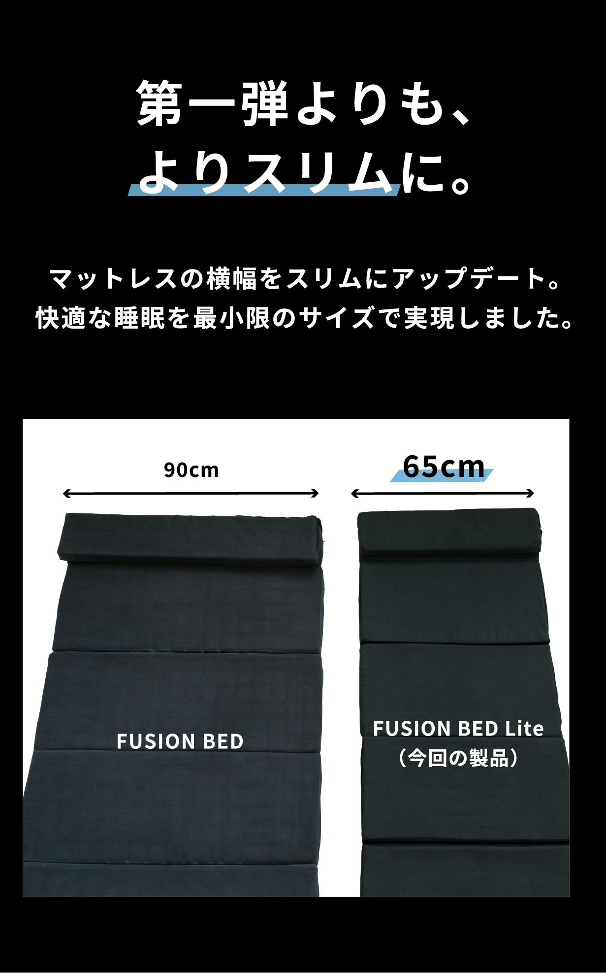 2025/11/12 12:14みなさんこんにちは!商品開発担当です。本日は、FUSION BED Lite開発のきっかけをお話ししたいと思います。「寝具って、もっとシンプルでいいのでは?」FUSION BED Lite の開発のきっかけは、創業メンバーの東京でのワンルーム暮らしでした。「布団が部屋の大部分を占領してしまう」「収納するにもスペースが足りない」そんな日常の悩みを解決したいと考えたのです。マットレス・掛け布団・枕を“ひとつ”に。そこでたどり着いたのが、“全部入り”のコンパクトベッド。マットレス・掛け布団・枕を一体化させ、使わない時はバッグのように小さくまとめられる仕組みを考案しました。来客用にも、防災用にも、もちろん普段使いにも対応できる「新しい布団の形」です。前作からの学びを活かして。前作「FUSION BED」は1万件以上の応援購入をいただきました。実際に使ってくださった方々からの声を受け、さらに“コンパクト・扱いやすく・持ち運びやすい”モデルとして誕生したのが FUSION BED Lite です。「布団は重くてかさばる」という常識を手放し、「必要な時に、必要な場所で、すぐに使える布団」を当たり前にしたい。FUSION BED Lite は、そんな思いから生まれたプロダクトです。最後までお読みいただきありがとうございます! もっと見る