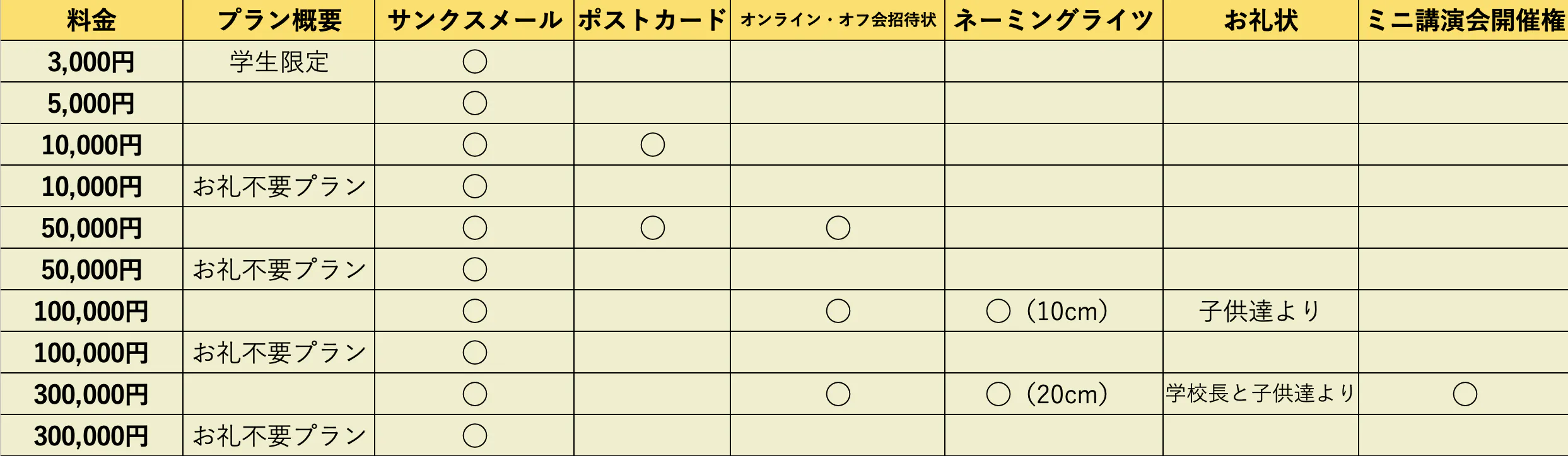 10,000円 :お礼不要プラン(サンクスメールのみ、5000円と同じ内容です)