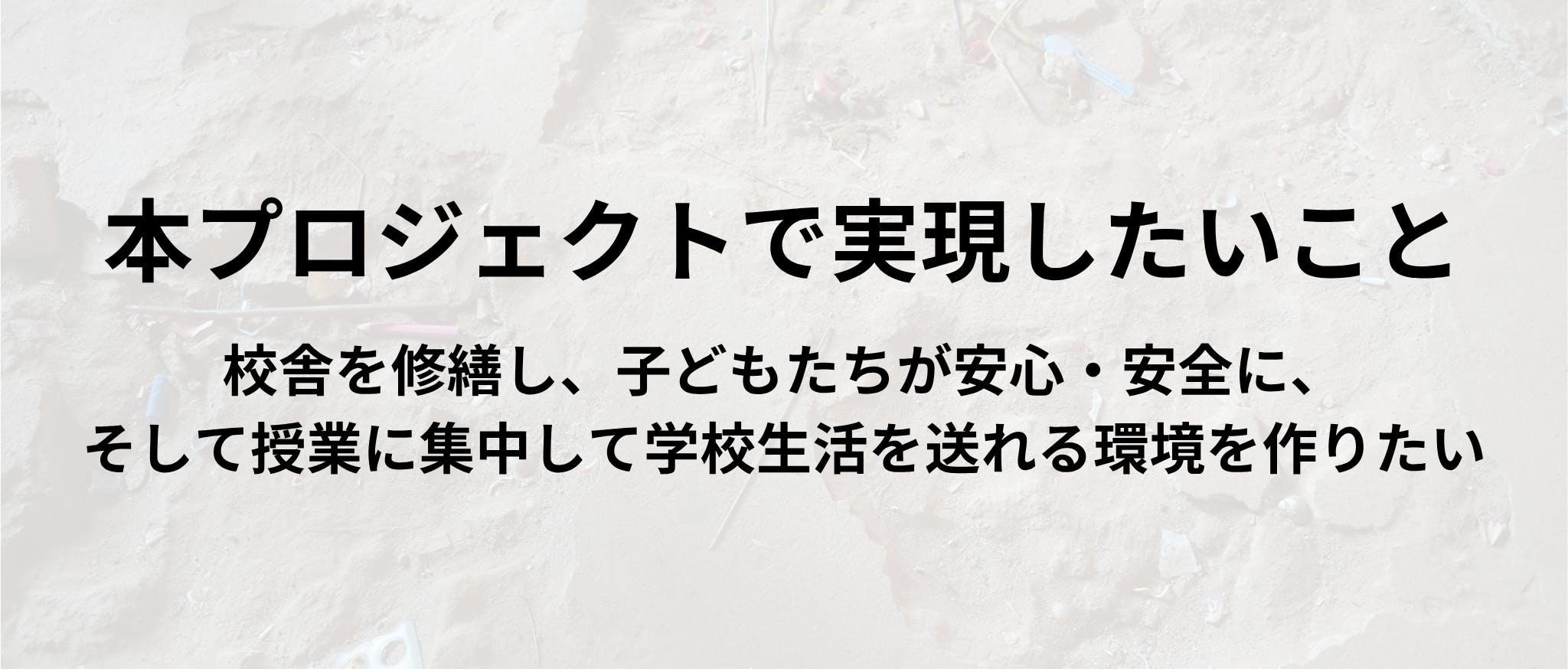 この子どもたちを対象とした活動対象地域で、山梨大学・学生が短期留学プログラムや様々なフィールドワークでお世話になっている小学校の破損がひどく、学校長から相談を受けたことが今回クラウドファンディングを行うきっかけになりました。