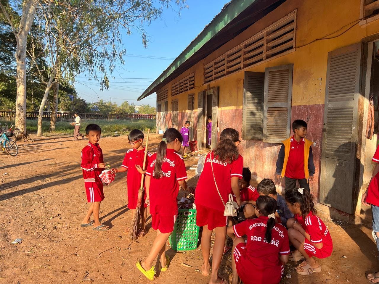 カンボジアでは、大分少なくなったとはいえ、ごみのポイ捨てがまだまだ多いです。自分たちで掃除をすることで、子どもたちのごみのポイ捨ても減ってきています、と校長先生。